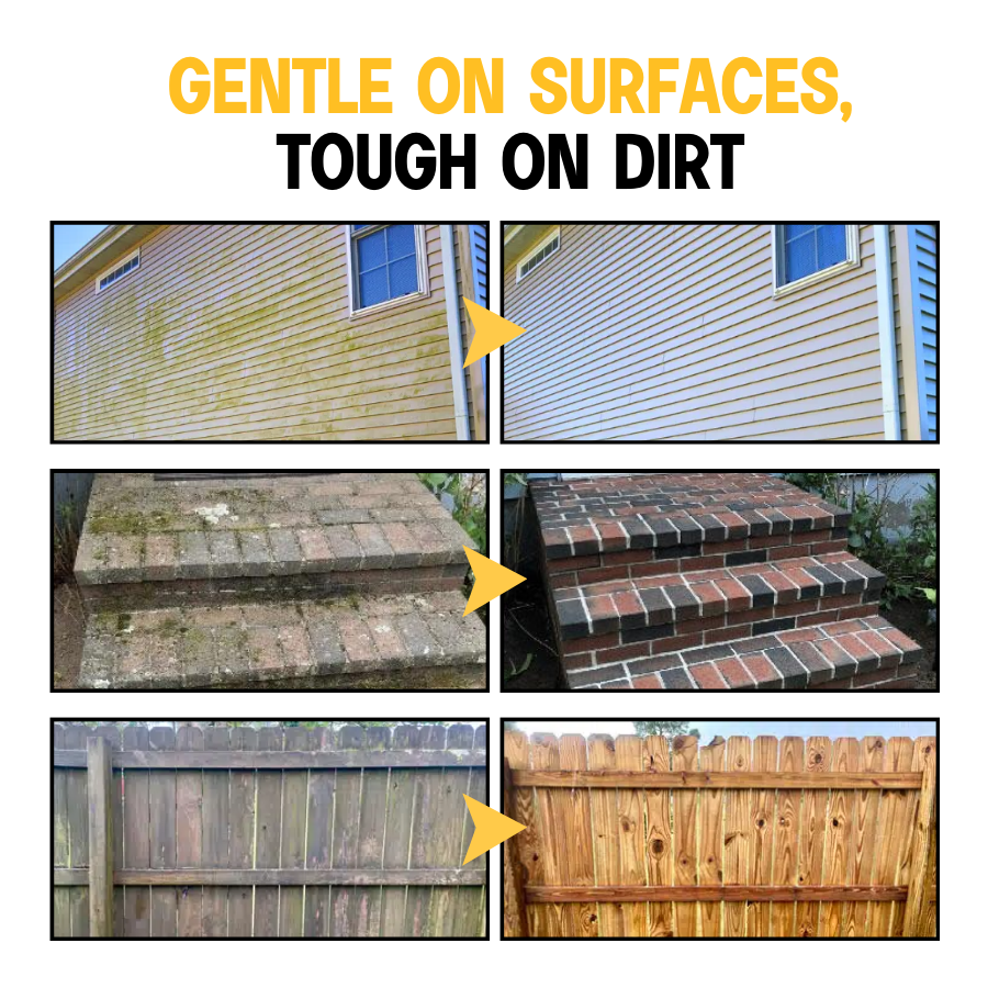 Safe for all surfaces, from wood and concrete to glass and plastic. Clean without stripping paint, wax, or finishes, making it ideal for use on cars, outdoor furniture, and more.