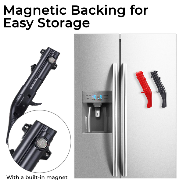 Magnetic Backing for Easy Storage: With a built-in magnet, the Bottle Cap Shooter easily attaches to your fridge or any metal surface, keeping it within reach and ready for action.