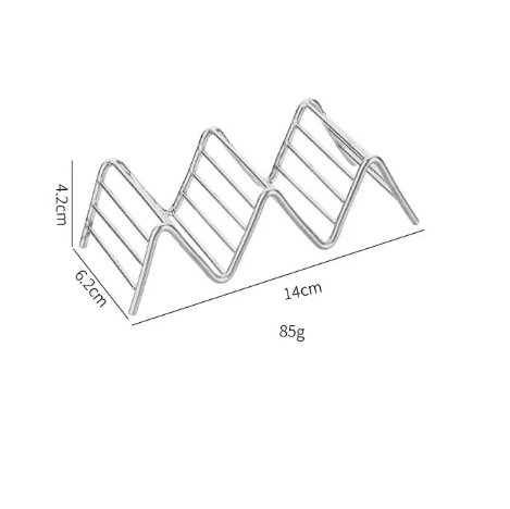Taco rack or soap holder—you decide! Perfect for taco nights, BBQs, or party platters, and equally handy beside your sink or shower for soap and sponges. Remove the plastic stopper before using with high heat.