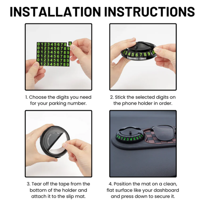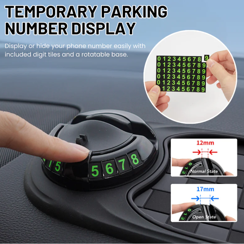 Includes 0–9 digit tiles so you can form and display your phone number for easy contact when parked. The rotatable base allows you to show or hide the number as needed for privacy.