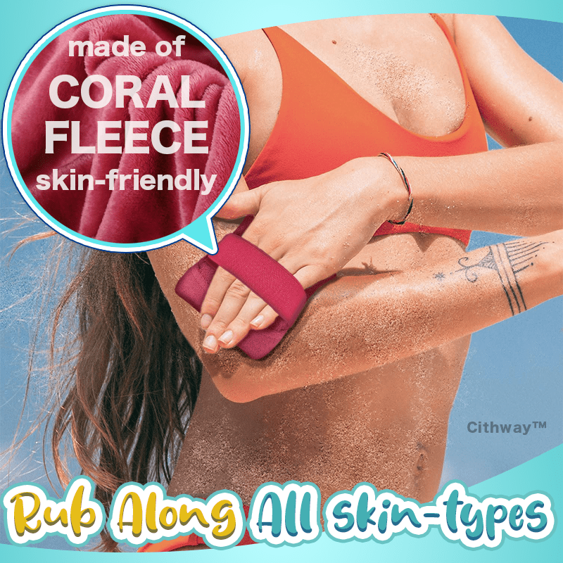 Made of high-quality, skin-friendly coral fleece fabric material with an excellent sand-removing performance and long-lasting durability. It can come into direct contact with all skin-types and rub-away every speck of sandy particles without harming or irritations. Furthermore, the beach sand pouch can be filled with powder and allows it to transfer from the skin without completely leaking in a mess. This sand-removing pouch is also odor-free so you can rub it along your skin with no funky smell transferring.